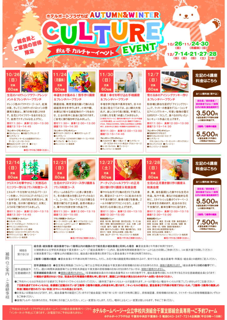 ホテルポートプラザちばの「秋・冬カルチャーイベント」のお知らせです。