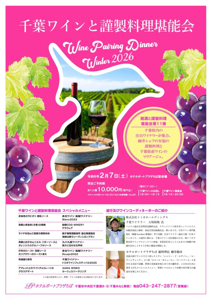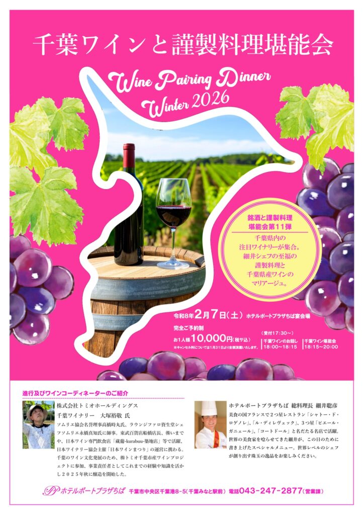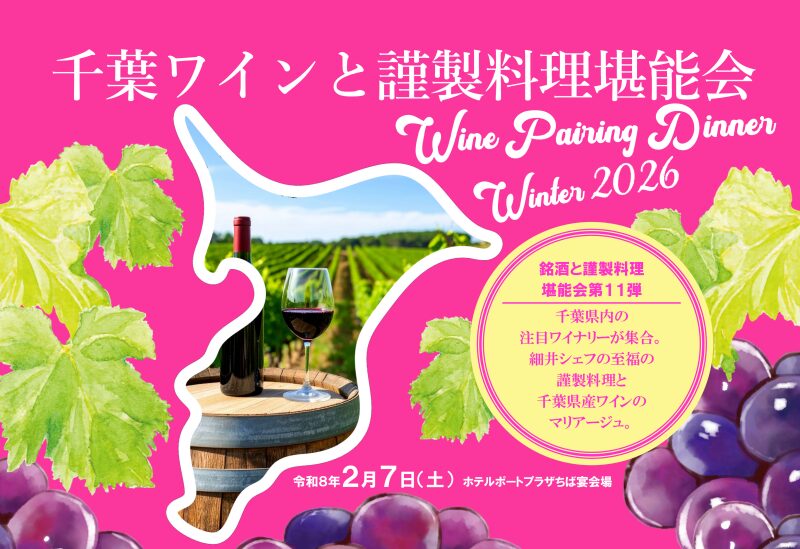 「千葉ワインと謹製料理堪能会」を開催いたします。千葉県内の注目ワイナリーが集合し、